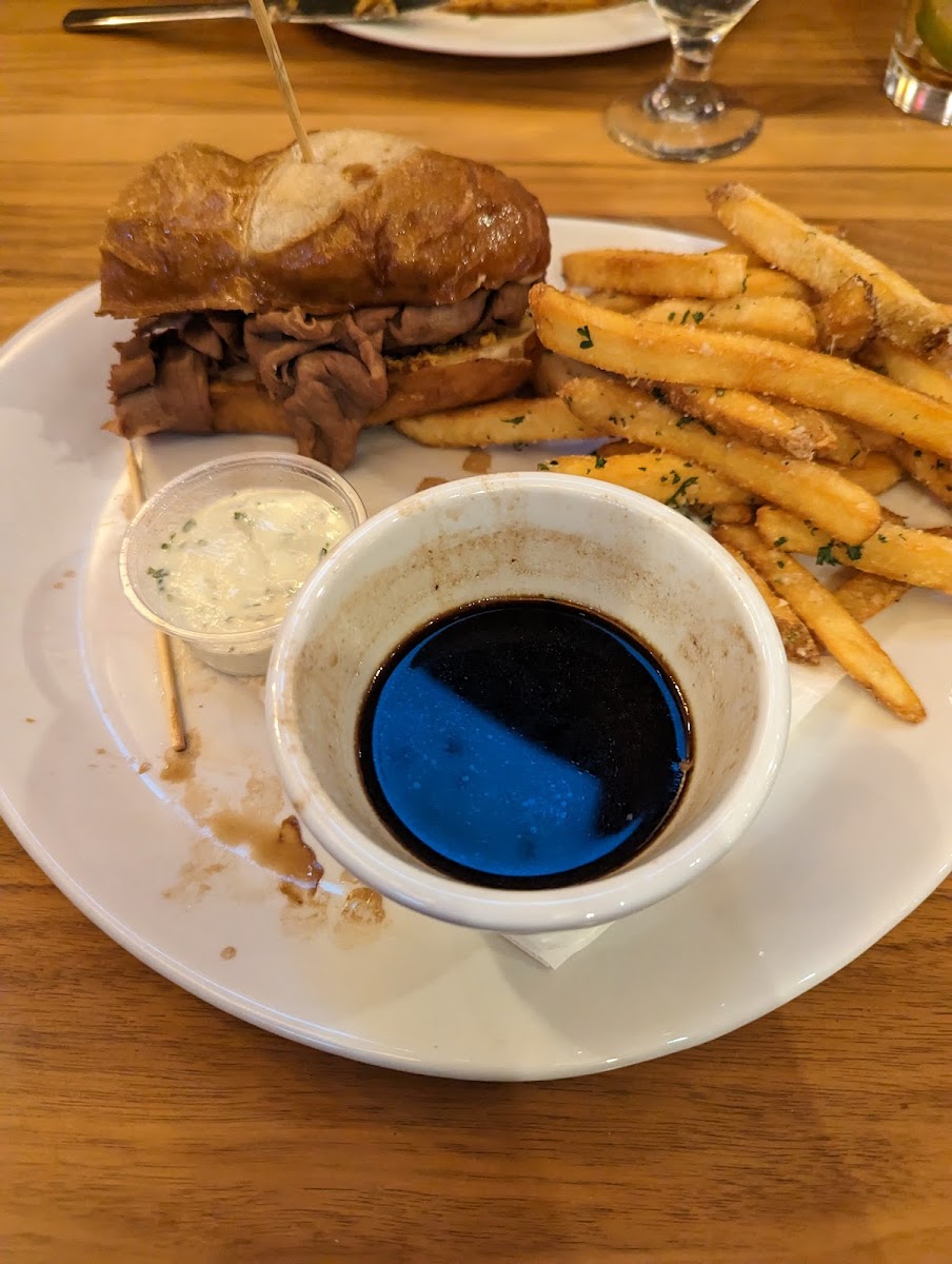 Every part of our meal was fantastic. The atmosphere is spectacular. The menu has a large array of choices. We went with the beef dip and the 8oz new steak as our mains and the cream brûlée for dessert. Everything we had was cooked to perfection and full of flavour. This was one of the best meals I’ve had out in a very long time.